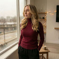 Deze tijdloze bordeaux coltrui is een veelzijdige must-have voor elke garderobe. Het slanke, elegante silhouet en de klassieke colkraag zorgen voor een stijlvolle uitstraling die moeiteloos past bij zowel casual als meer geklede outfits.