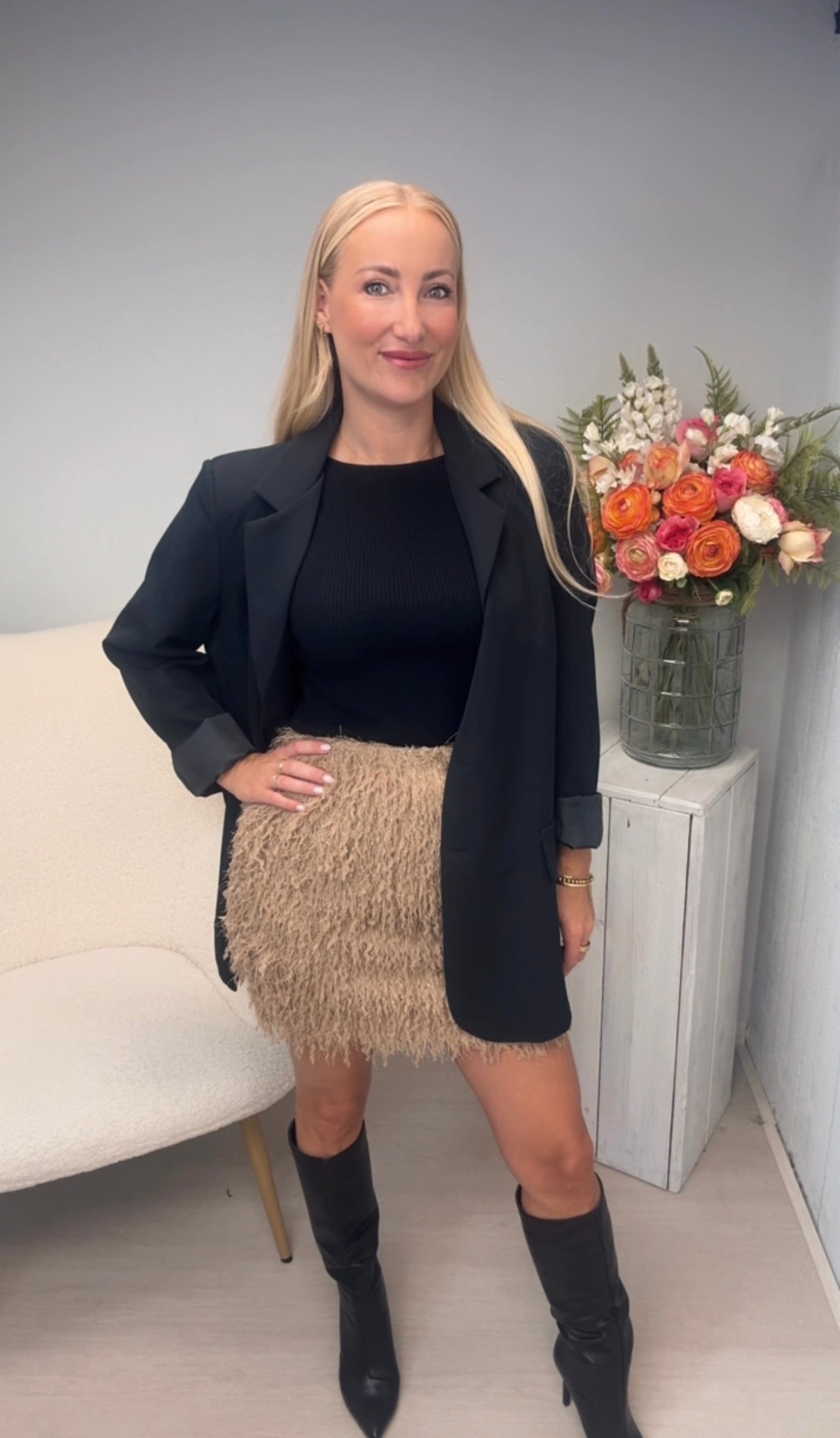 Feather skirt beige