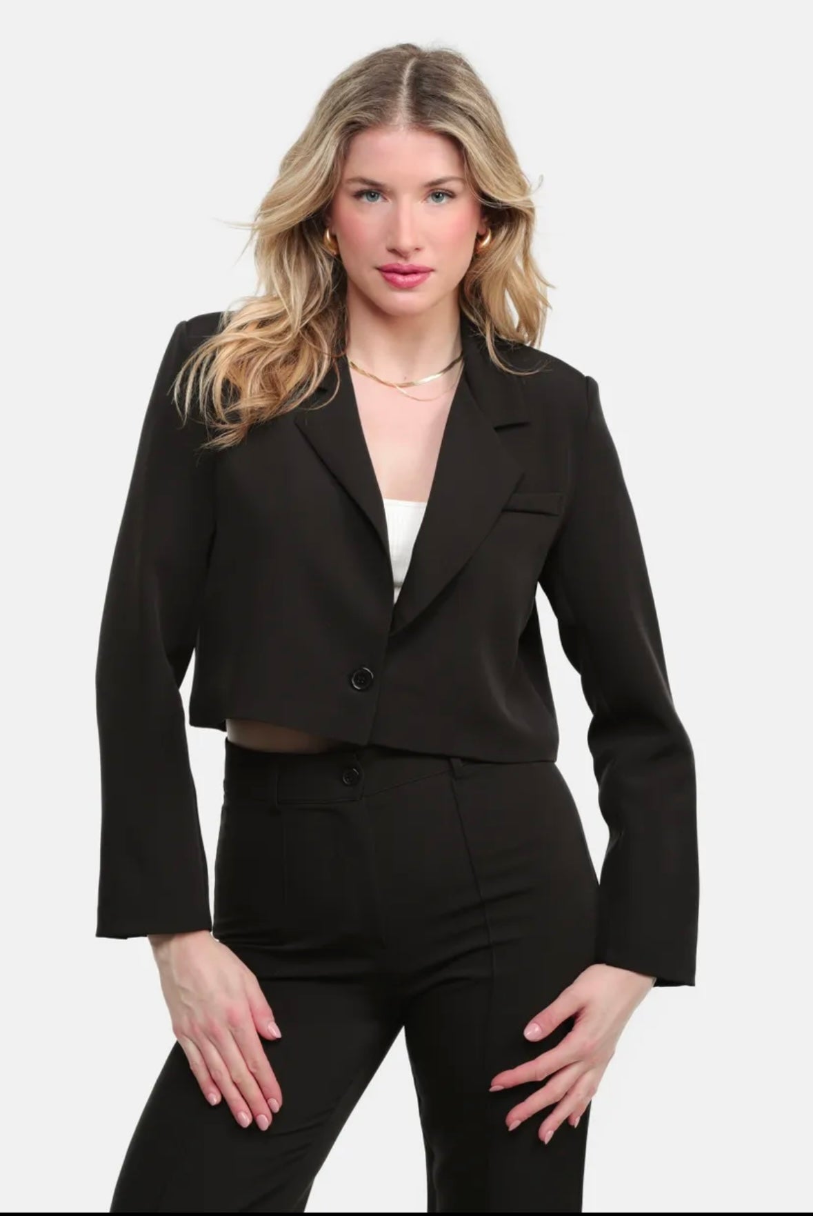 Cropped blazers zijn een echte trend, we love it! Deze cropped blazer heeft een regular fit met lange mouwen. Met een V-hals en knoopsluiting. Het item kan perfect worden gedragen op de Joan pantalon of de joan skorts.