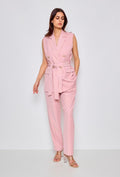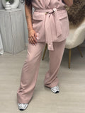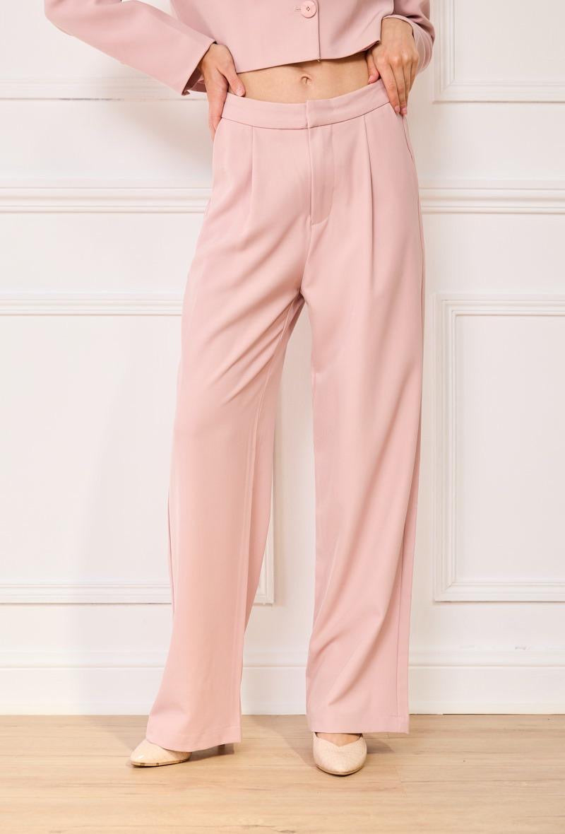 Dit prachtige pak in zachte nude pink tint straalt pure elegantie uit. De wijd uitlopende pantalon met mooie plooi aan de voorzijde,broekzakken geeft je een classy én krachtige look. Combineer het met de blazer,hakken voor een chique vibe of met sneakers voor een casual twist