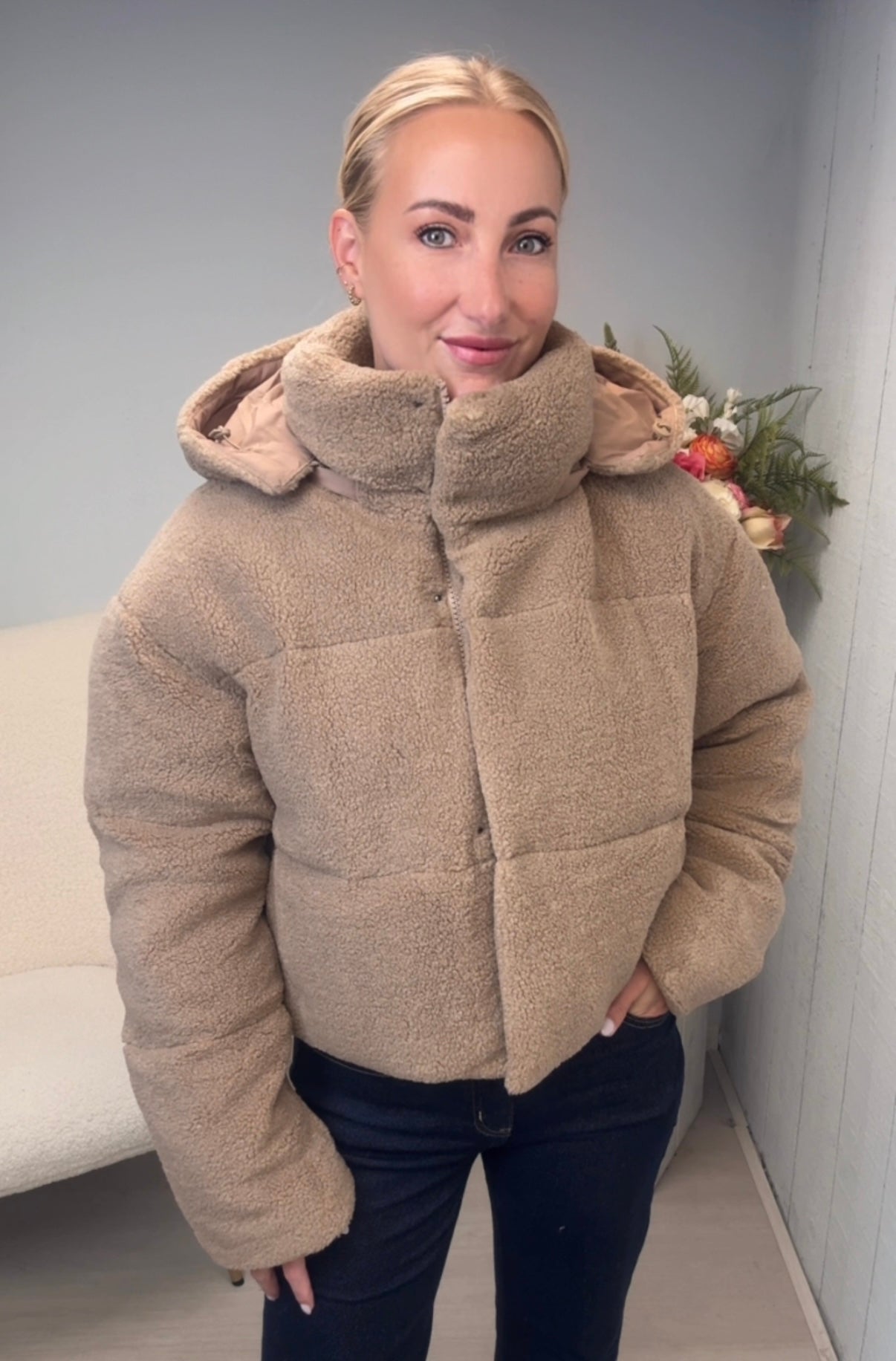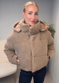 Teddy Puffer Jacket – Beige